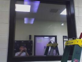 The image below is a before and after, we install a dual reflective window film on this glass to provide privacy to the officer behind the glass. In combination of light control and reflective film, One-way vision can be achieved.